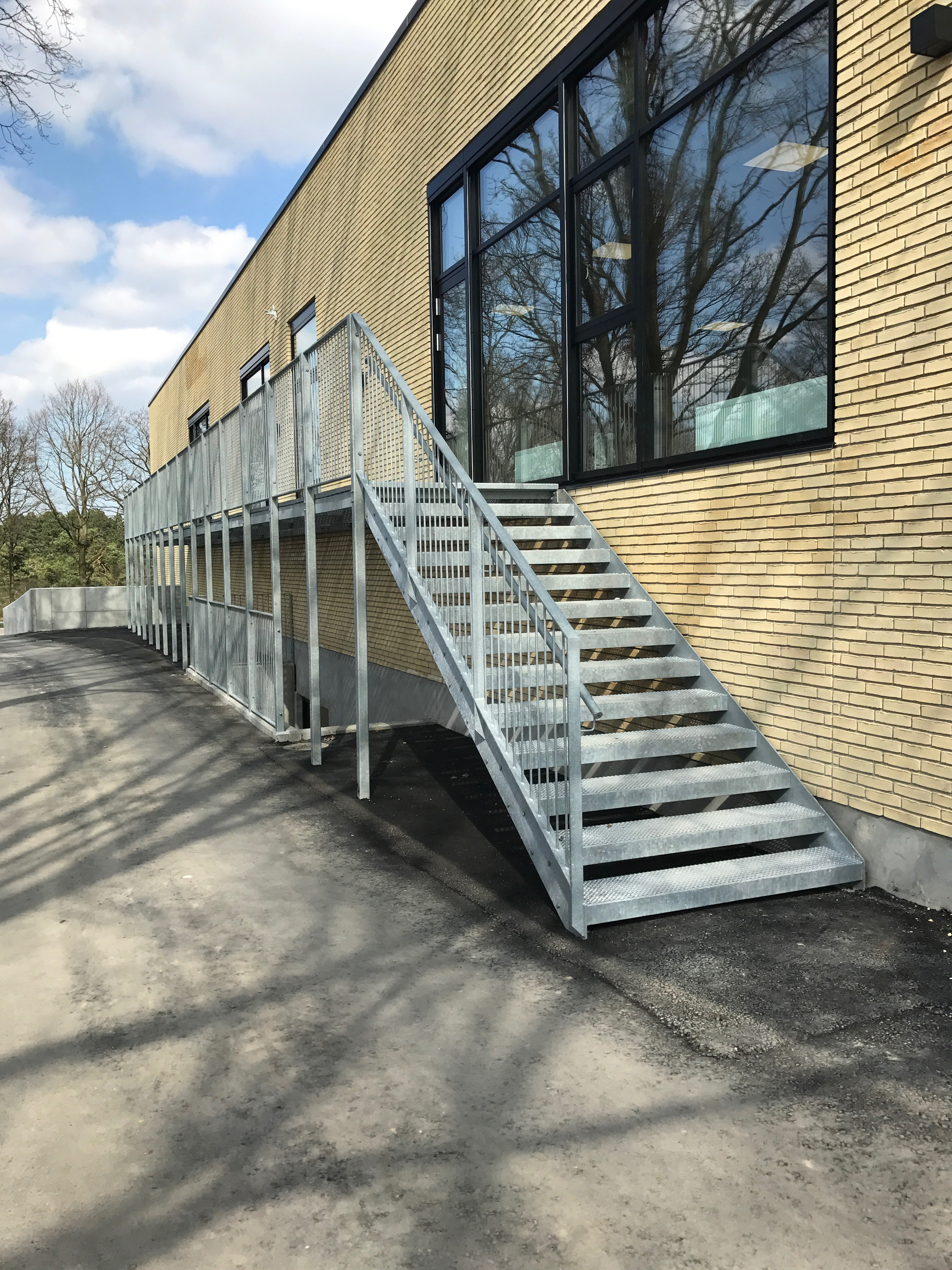 Med gangbroer, rækværk og gelændere i stål har vi indirekte medvirket til den velfungerende ramme for både undervisere og elever i Kgs. Lyngby. Dertil har vi også leveret bygningens flugtvejstrapper. Lad billederne tale for sig.