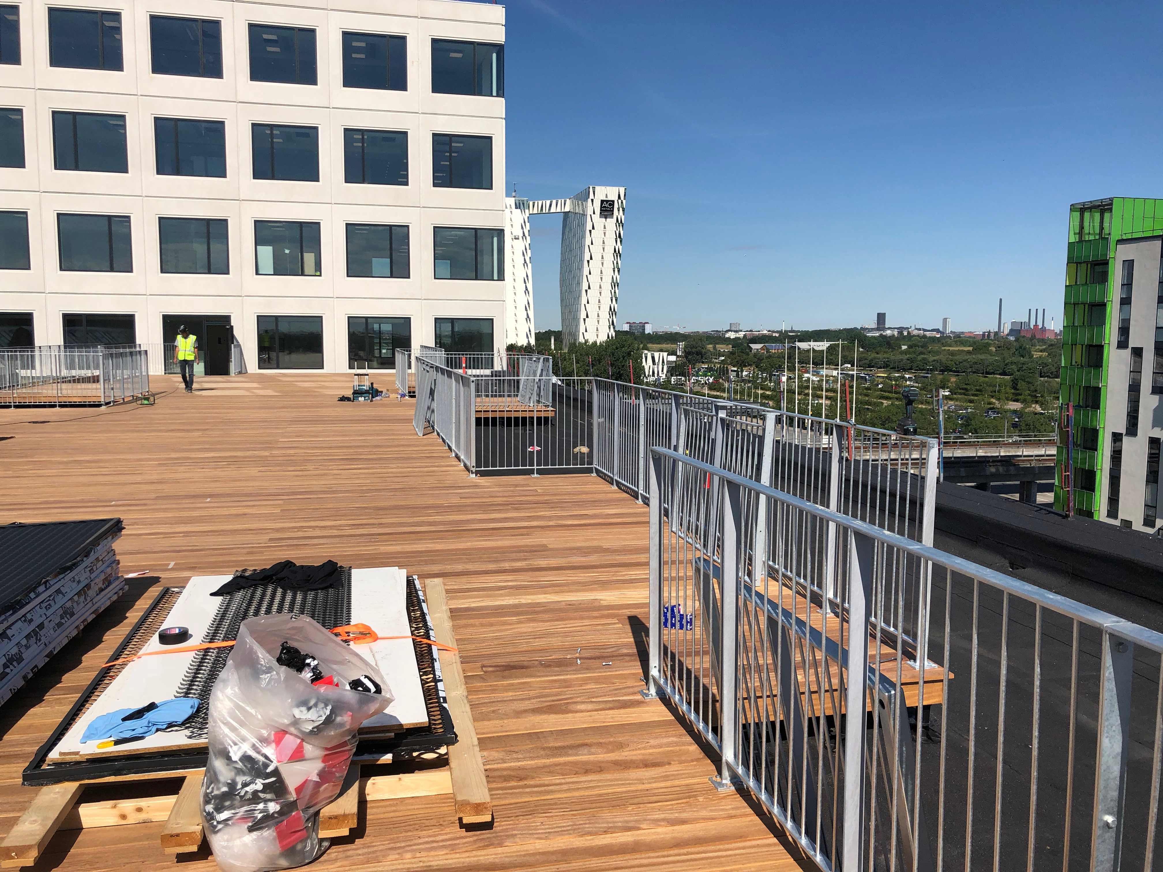 Blandt nyere bydele i København findes Ørestad City på Amager. Det er en attraktiv bydel bestående af erhvervs- og boligbyggeri. I den forbindelse har vi i stål udført kørerampe i stål samt rækværk til den store tagterrasse.